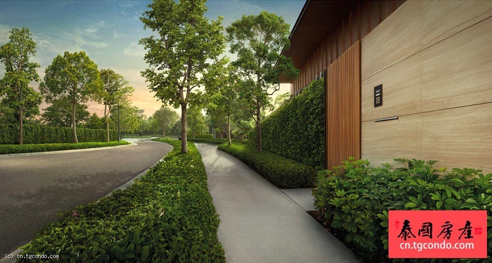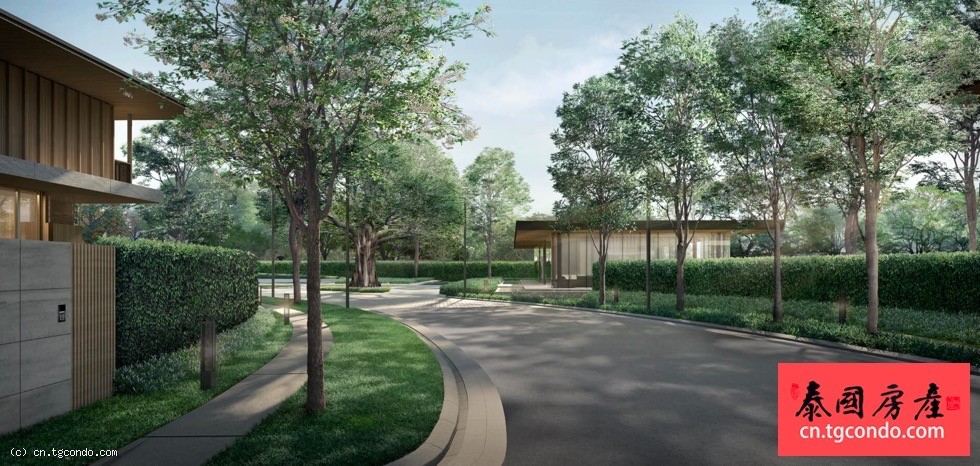 山提布里别墅区铺设有流畅、舒适的18米宽大道,沿途有葱绿的灌木丛和大树,绿色的林荫大道直达您的住所,让美丽的自然风光成为第一个迎接您回家的地方。