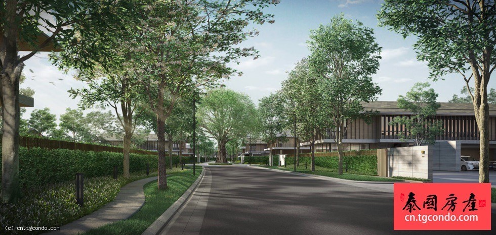 别墅社区中的林木特别选择5-10年的长期树木,遮荫同时风景秀丽,当树叶落下时且易于清洁和保养。